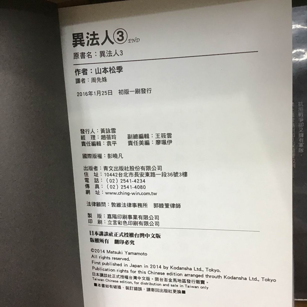 買動漫 Avi的店 全新書 異法人1 書套 山本松季 青文漫畫